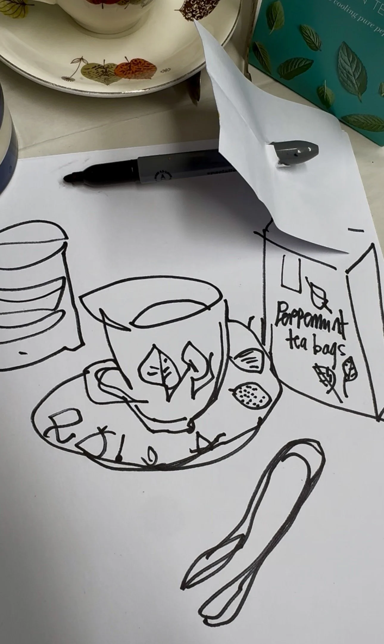 An added layer is to try to keep your pen on the paper for as long as possible, drawing in one continuous line. It’s not about perfection—far from it. In fact, the odd peek is absolutely OK!